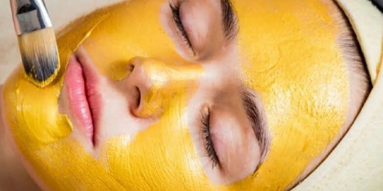 Mix 3 tbsp turmeric powder, 5 tbsp Olive oil and 1 tbsp lemon juice. Apply the mixture on your face and neck . Let it dry for 20 min and wash off.